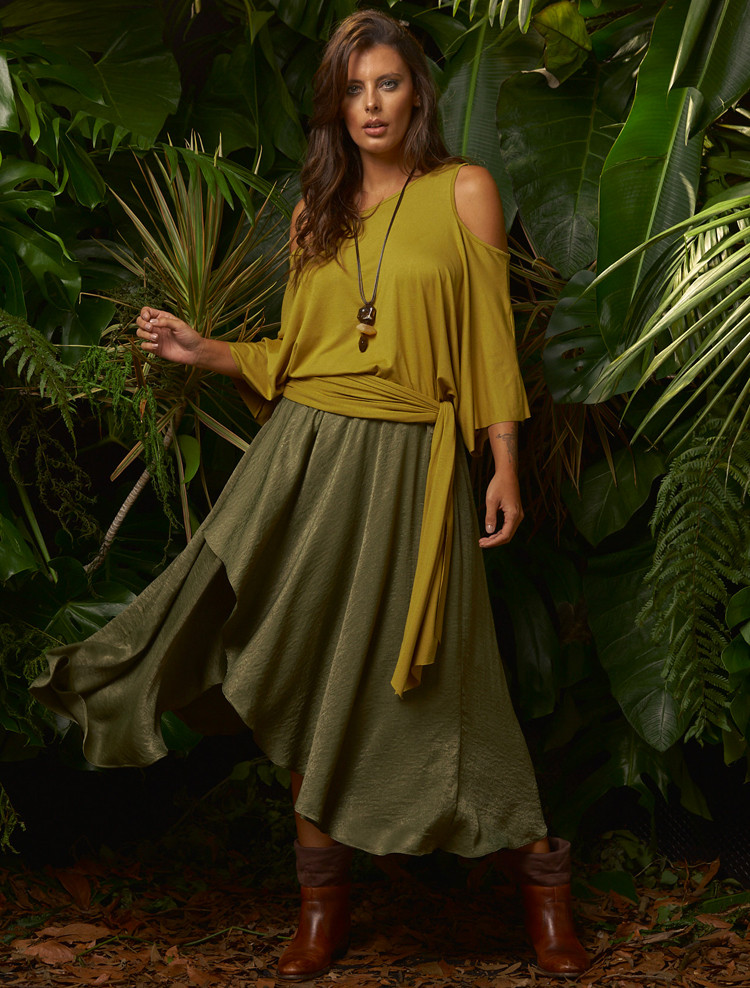 Blusa com recortes assimétricos nos ombros e no decote. Com manga morcego e faixa lateral que amarrada marca a cintura, afinando assim a silhueta. O conforto da malha, aliado a modelagem moderna, transformam essa peça na estrela de suas produções.