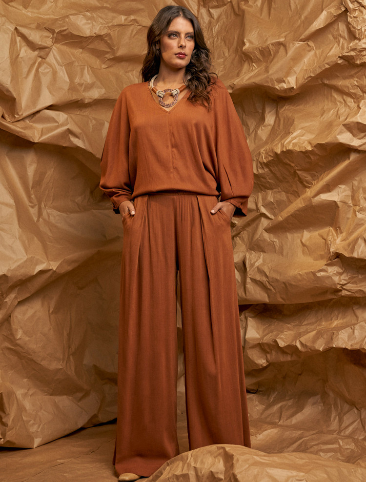 Blusa Meia Manga Linho Ferrugem