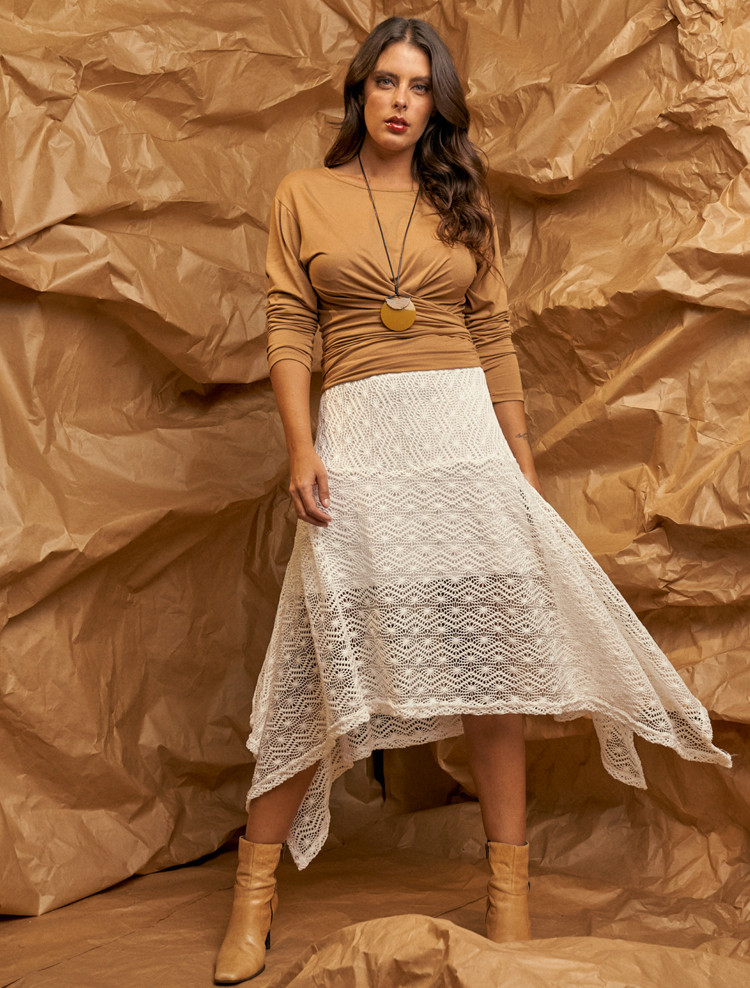 Blusa Nó Manga Longa Caramelo