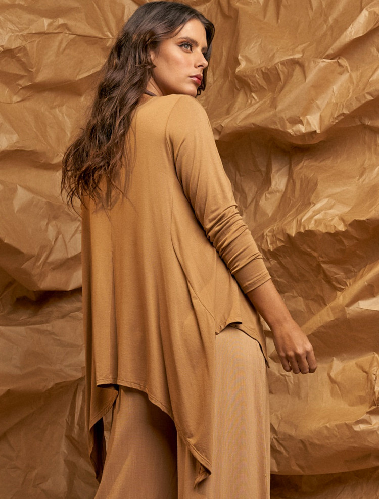 Blusa Ponta Manga Longa Caramelo Blusa Ponta Manga Longa Caramelo Blusa Ponta Manga Longa Caramelo