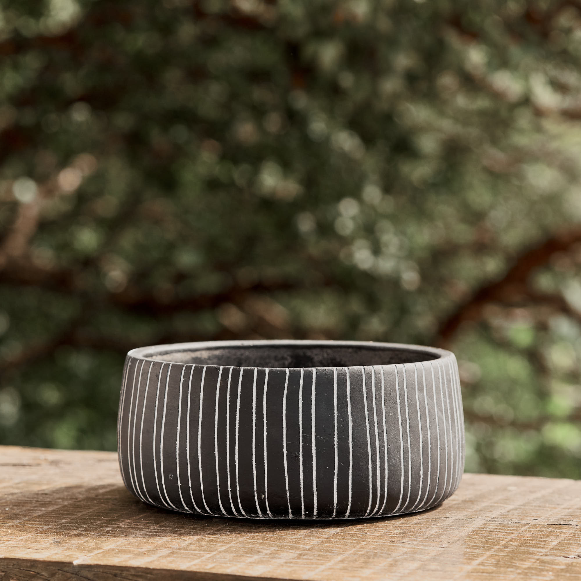 Peça confeccionada em cimento e estampa de listras. Perfeito para decoração de ambientes, acomoda plantas, velas ou organização de objetos.