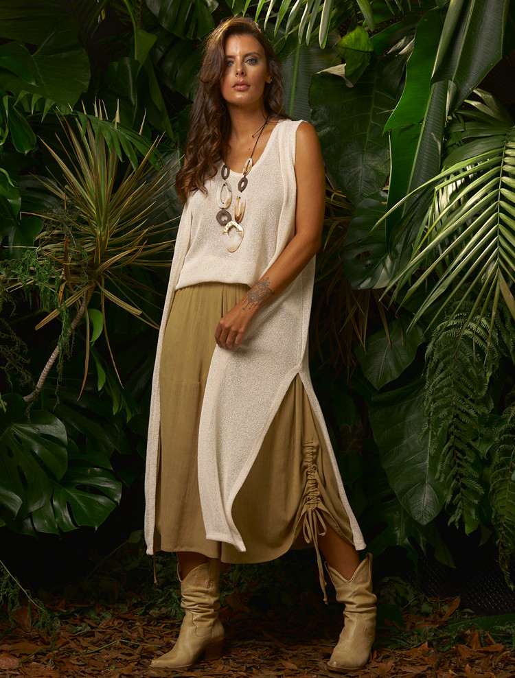 Detalhes do ProdutoTricoLongoComposição96% Viscose04% ElastanoMedidas da PeçaU – Busto até 105cm | Cintura até 100cm | Quadril até 117cm