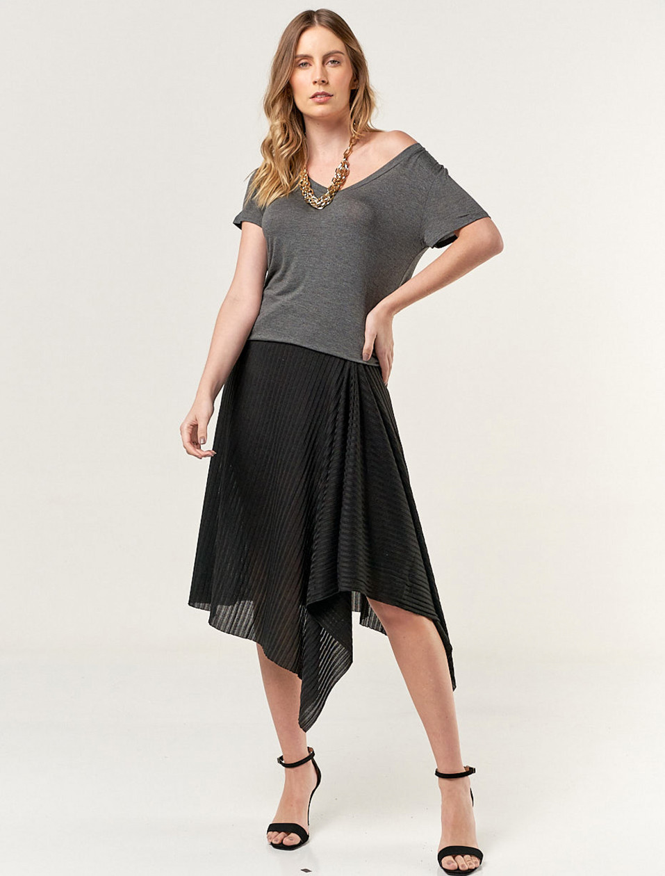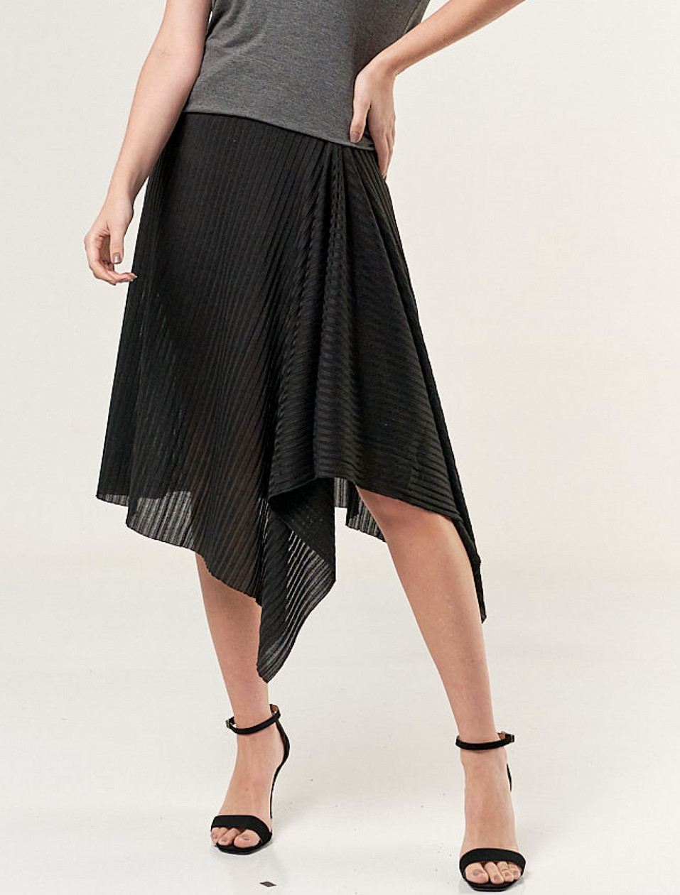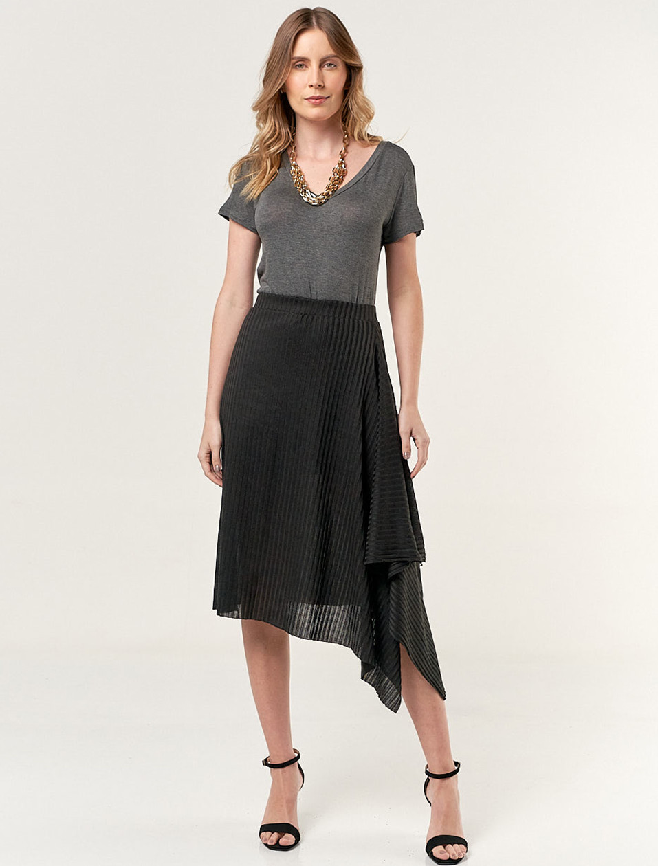Saia Canelada Assimétrica Preta