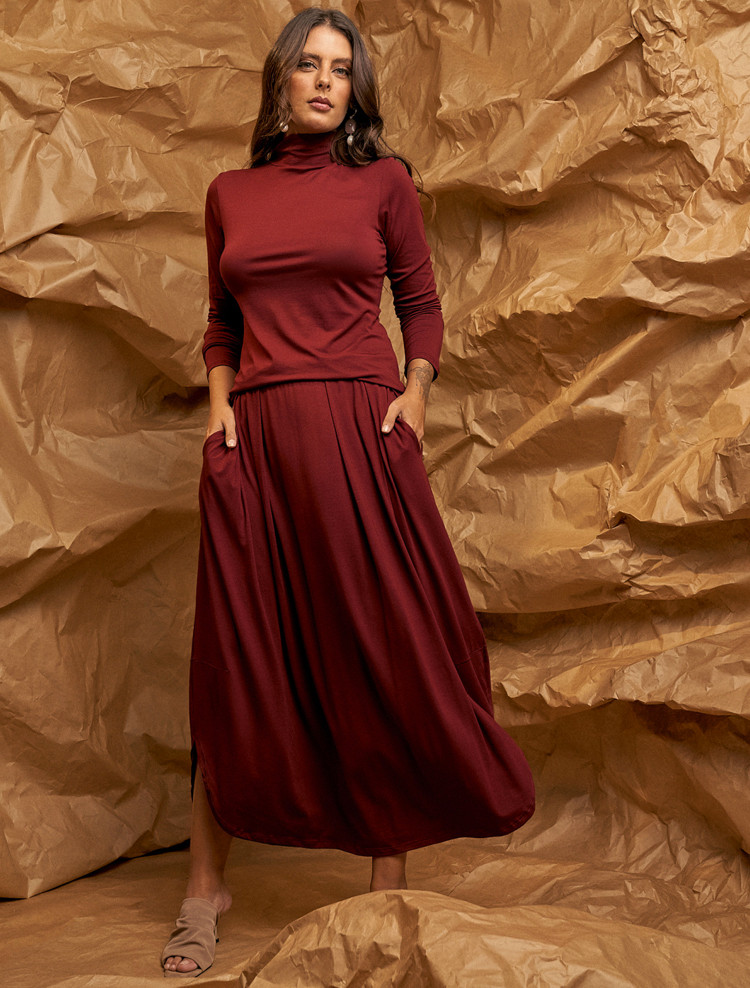 Detalhes do ProdutoElástico Cintura BolsosDetalhe LateralComposição96% Viscose04% ElastanoMedidas da PeçaU – SAIAS - Comprimento 105 cm | Quadril até 117 cm | Cintura até 100 cm