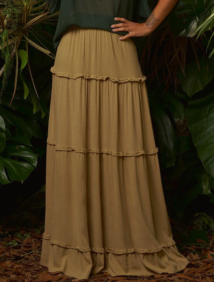 Saia Rodada Linho Cáqui