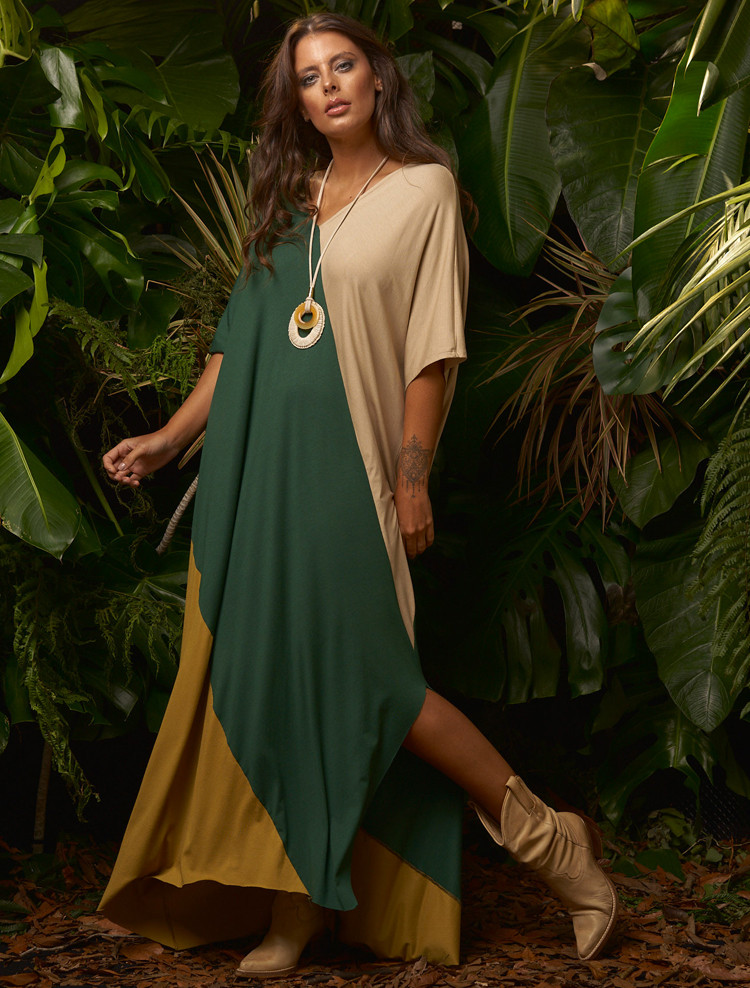 Vestido Tricolor Manga Verde Folha Vestido Tricolor Manga Verde Folha Vestido Tricolor Manga Verde Folha